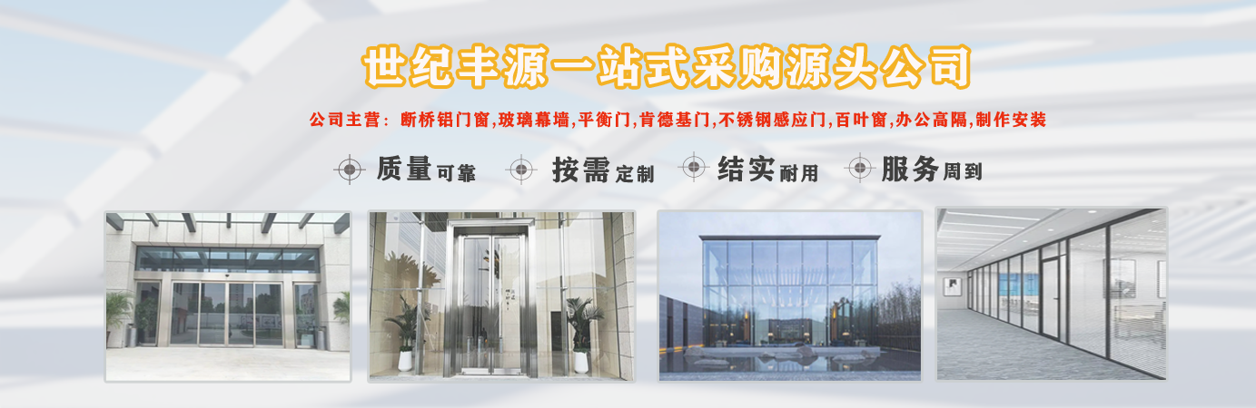 天津世紀(jì)豐源門窗有限公司從事斷橋鋁門窗,玻璃幕墻,平衡門,肯德基門,不銹鋼感應(yīng)門,百葉窗,辦公高隔,制作安裝一站式訂制生產(chǎn)及配套服務(wù)等。  公司自成立以來,始終堅(jiān)持以人才為本、誠信立業(yè)的經(jīng)營原則,薈萃業(yè)界精英,成熟的技術(shù)、管理方法及企業(yè)經(jīng)驗(yàn)與國內(nèi)企業(yè)的具體實(shí)際相結(jié)合,為企業(yè)供給各個方面的解決方案,使企業(yè)在激烈的市場競爭中始終堅(jiān)持競爭力,實(shí)現(xiàn)企業(yè)快速、穩(wěn)定地發(fā)展。  質(zhì)量好、服務(wù)好、才能信譽(yù)好,公司已在諸多領(lǐng)域取得輝煌成績,愿意成為您可信賴的長期合作伙伴。  讓我們攜手同行,共同實(shí)現(xiàn)“讓普通老百姓都用得上高端門窗”...